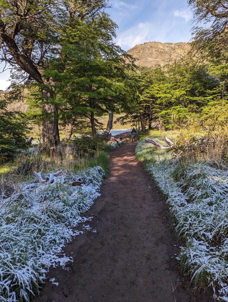 Our goal wasn’t the Fitz Roy summit—leave that to the rope-clad climbers with permits. We were heading to the lake at its base. The final 2 km were a snowy wonderland, dotted with hikers enjoying their lunch or sipping mate. Pro tip: if someone’s drinking mate, they’re South American.