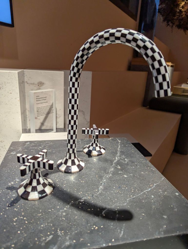 The evening continued with bathroom showrooms — which, by that hour, were basically wine bars with taps and toilets as decoration. Knackered staff poured us drinks and joined us in pretending the week was over. By 9 pm, I decided enough was enough. Not because I was sensible, but because I had a 6 am flight from — who knows where.